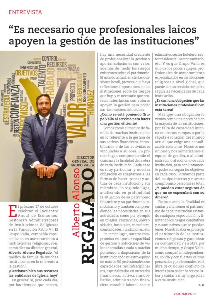 El próximo 17 de octubre celebran el Encuentro Anual de Ecónomos, Gestores y Administradores de Instituciones Religiosas en la Fundación Pablo VI. El Grupo Valía, compañía especializada en asesoramiento a instituciones religiosas, son, como dice su director general, Alberto Alonso Regalado, “el médico de familia de muchas instituciones en lo referencia a la gestión”.